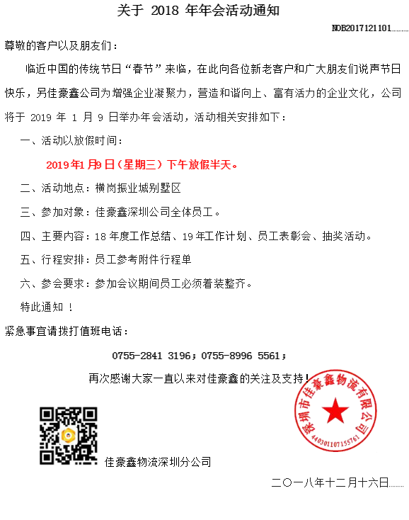 深圳佳豪鑫物流2018年年會活動通知
