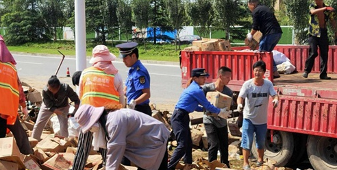 貨車又側翻了,滿地的調味品?還有人被埋了