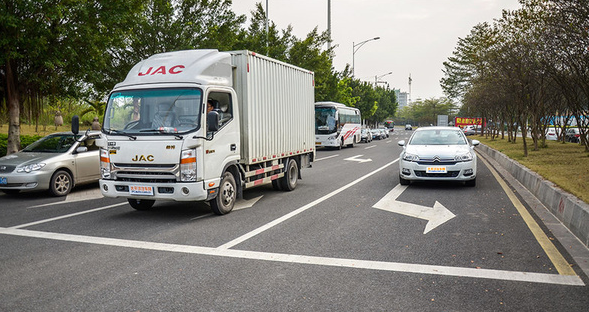 貨車本身體積較大,在急彎路段轉彎時,一旦車速較快就很容易出現側翻情況。所以類似路段,請盡量和大貨車保持距離,切勿在轉彎路段超車行駛。