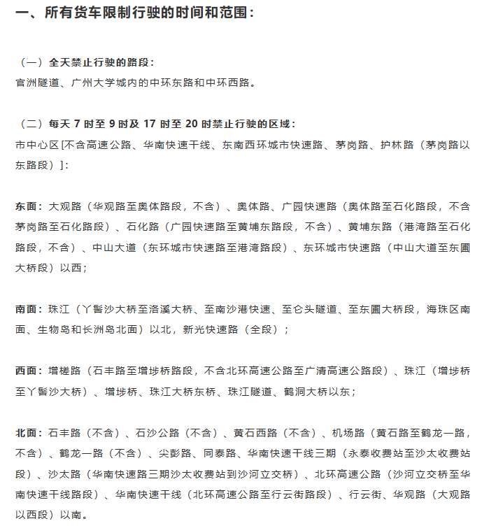 自10月1日起,廣州將實施最新的市內貨車限行政策,具體如下: